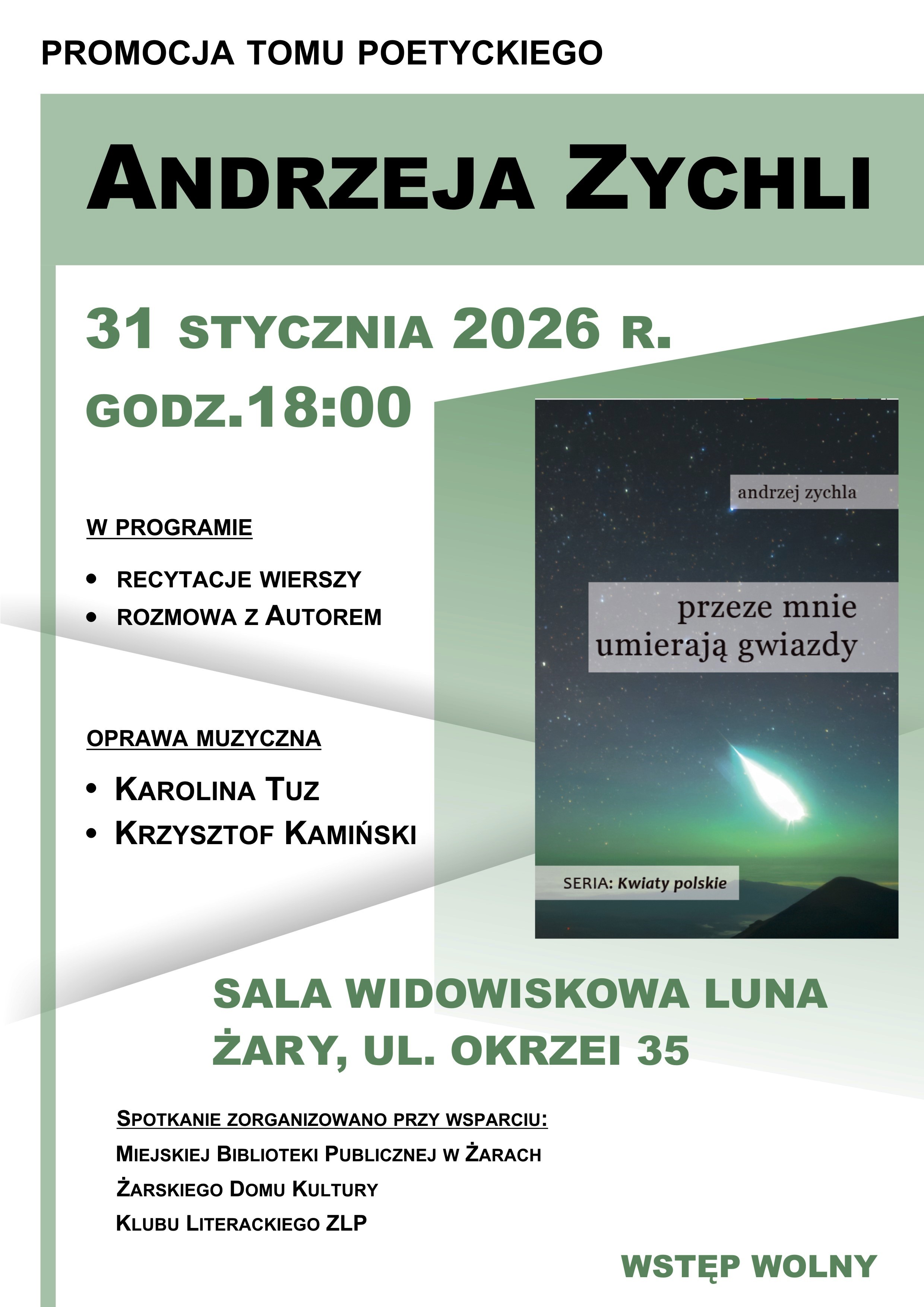 Szanowni czytelnicy, ze względu na duże zainteresowanie spotkaniem autorskim ze Sławkiem Gortychem informujemy, że spotkanie odbędzie się w Folwarku Zamkowym, Żary ul. Folwarczna 3.